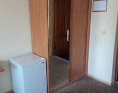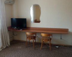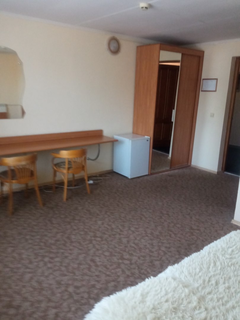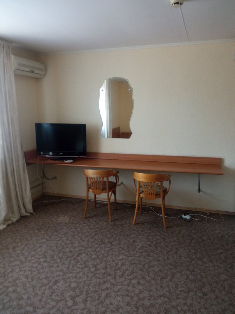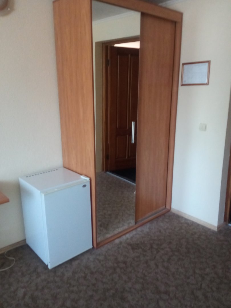 В одноместном номере мини отеля "Круиз" имеется: двуспальная кровать, платяной шкаф, комод, письменный стол, TV, телефон, холодильный шкаф, санузел, душевая кабина.